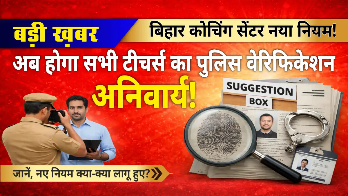 नए निर्देश के मुताबिक अब कोचिंग संस्थानों में पढ़ाने वाले सभी शिक्षकों और कर्मचारियों का पुलिस वेरिफिकेशन कराना अनिवार्य होगा।