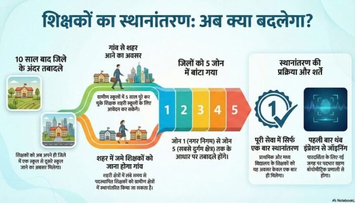 अब शिक्षकों का स्थानांतरण इन्हीं जोन के आधार पर किया जाएगा, जिससे किसी भी तरह की मनमानी या सिफारिश पर होने वाले तबादलों पर रोक लगेगी।